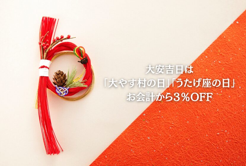 ぜひ、「大やす村」と「うたげ座」でお得にお楽しみください!!